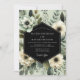 An elegant composition features creamy white blossoms with dark centers, nestled amongst lush sage green foliage and delicate botanical accents. The overall aesthetic evokes a rich, sophisticated, and natural beauty, perfect for a memorable occasion.