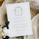 Formal Elegante Sábado Verde Crest Barroco Monograma Casamento Convocação Apresenta uma crista vintage de estilo barroco com monograma moderno e é aparada com uma delicada armação. Este convite de casamento vitoriano tem uma formulação formal tradicional com os nomes dos pais que organizam o casamento, e a tipografia elegante é acentuada por caligrafia delicada.