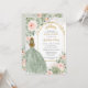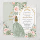 Este convite para a Quinceañera apresenta cor d'água verde, floral, verde-senso suave e uma loira em um lindo vestido verde-sábio. Personalize-o com seus detalhes de forma fácil e rápida, basta pressionar o botão personalizar para reorganizar e formatar o estilo e a colocação do texto. Também excelente para Sweet 16! c) O Feliz Cat Studio