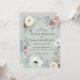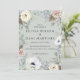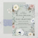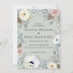 Sage Green, White, Ivory, Pink Blush Florals com elementos do convite de casamento da natureza. Flores pastéis bonitas, elegantes e românticas com toques de galhos de pínus, bagas e pínus.
