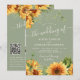 Modern rustic botanical sunflowers budget affordable all in one sage green wedding invitation with custom photo, QR code to website, and online rsvp featuring a chic handwriting calligraphy script. +++++ Suitable for rustic modern summer or autumn fall garden or outdoor backyard farmhouse barn weddings.
