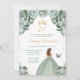 Convite Sage Green Brown Hair Princess Festa de aniversári