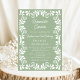 Sage Green Mexicano Talavera Cielito Lindo Baptism e o Primeiro Convite de Aniversário Hermoso Carino temem - Celebre o batismo do seu pequeno com esta bela arte mexicana talavera inspirou design para um Primeiro Aniversário e Baptismo. Com a paleta tradicional mexicana de cor do azulejo Talavera, legal, suja e natural, verde e branco brilhante. O texto da caligrafia e os clássicos giros mexicanos fazem disso um convite único, acolhedor e festivo para bautizo. Perfeito para uma Celebração do Fiesta Baptism Mexicano e Primeiro Aniversário. Personalize este chá de panela editável com seus próprios detalhes de evento. Disponível para pedidos em formato imprimível ou download digital instantâneo, fácil de enviar por email, texto ou mídia social.