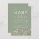 Convite Sage Green Código QR Flor Selvagem Bebê em Chá Blo