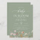 Convide convidados para uma celebração encantadora com este Bebê de Flor Selvagem do Código QR Verde Sage em Convite Bloom. Apresentando flores silvestres delicadas em tons verdes macios e um roteiro elegante, este design inspirado em boho adiciona um toque de beleza da natureza. O código de QR integrado torna as respostas de RSVP sem esforço, garantindo uma experiência de planejamento perfeita. Perfeito para um na moda, chá de fraldas moderno com tema rústico e botânico.