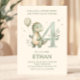Cute Dinosaur 4th Birthday Invitation | Roarsome Four Dino Party Invite | Green Pastel Dino Balloon Kids Birthday