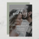 Elegante convite para casamento de fotos verdes com uma fonte moderna. Personalize facilmente estes convites de casamento verdes sábios com suas imagens e detalhes de casamento. Itens correspondentes disponíveis.
