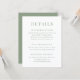 Complete your wedding stationery suite with this sage green elegant wedding details card, designed with a refined minimalist layout and soft botanical tones. Perfect for sharing essential information such as accommodations, reception details, transportation, dress code, or weekend events. The clean typography and modern sage palette create a cohesive look that pairs beautifully with natural, elegant, outdoor, and contemporary wedding themes. Fully customizable and print-ready for seamless coordination with your invitations.