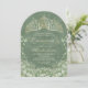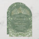 Convite Sage Green Elegante Coroa Floral Quinceanera