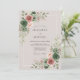 This romantic design features a soft color palette of sage green and dusty rose set against a warm neutral backdrop. Lush bouquets of watercolor roses and delicate eucalyptus foliage create an atmosphere of timeless elegance. The artistic floral elements provide a graceful botanical aesthetic perfect for a refined spring or summer event.