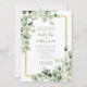 Convite Sage Green Eucalyptus Leaves Gold Frame Wedding