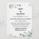 Soft watercolor eucalyptus accents frame your names and wedding information in elegant typography. The minimalist botanical style works beautifully for garden venues, rustic barns, vineyards, or outdoor celebrations.