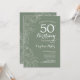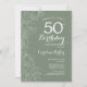 Sage Green Floral 50º Convite de aniversário. Design minimalista moderno com desenhos botânicos em destaque e letra de script de tipografia. Simples trendy convida cartão perfeito para uma festa de na moda. Pode ser personalizado para qualquer idade. Impressos convites Zazzle ou modelo de impressão digital instantânea para download.