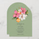 Announce your upcoming nuptials with this exquisite botanical arch wedding invitation in a soothing sage green hue. Adorned with a watercolor-inspired bouquet of vibrant pink hibiscus and delicate white blooms, complemented by charming oranges, this design evokes a sense of fresh romance and natural beauty. The unique arch shape adds a modern yet classic touch, making it a memorable keepsake for your guests as they prepare to share in your happiness.