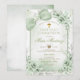 Convite Sage Green Floral Boy Cross First Holy Communion