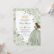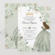 Convite Sage Green Floral Princess Gown Quinceañera Quince