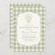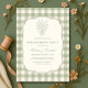 Sage green gingham floral engagement party invitation featuring soft florals and a classic gingham pattern for a charming, romantic look. Designed to celebrate an engaged couple with a warm, timeless style that blends rustic and elegant details. Ideal for engagement parties, pre wedding celebrations, and casual or outdoor gatherings. Editable text with a clean, print-ready layout.