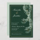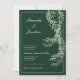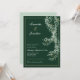 Este convite de casamento verde esmeralda apresenta um gráfico de folhas verdes senegosas acentuadas com botânicos de ouro. O gráfico aparece no lado direito do convite vertical. Isto é perfeito para qualquer casamento, incluindo uma cerimônia ao ar livre.