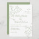 Convite Sage green line art floresce casamento monocromáti
