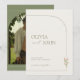 This invitation beautifully blends minimalist elegance with a warm bohemian vibe. The back features a prominent arch-shaped photo slot for you to showcase your favorite couple's picture, set against a calming sage green background with delicate white line-art arches.