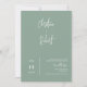 Este convite de casamento ao estilo minimalista moderno apresenta uma bela tipografia de escrita e fontes serif simples com um fundo verde sábio. É perfeito para qualquer tema de casamento. Substitua a foto e o código QR pelo seu na parte traseira do convite para lhe dar um toque pessoal agradável. Se precisar alterar a cor, você pode personalizar o cartão de convite. Você pode personalizar e personalizar o convite para ajustado das suas necessidades de evento de casamento e clicar em personalizar o convite. Você pode personalizar facilmente este convite com seu próprio texto e compartilhá-lo com seus convidados digitalmente — seja através de texto, email ou mídia social. Se preferir, você também tem a opção de enviar uma versão impressa para seus convidados. Ou, você pode fazer ambos — enviar uma versão digital e acompanhar com uma cópia impressa para um toque pessoal!