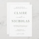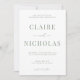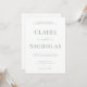 Um convite para casamento moderno e elegante apresenta um design verde e branco minimalista. Personalize com seus detalhes de casamento com a fácil edição de modelo com uma fonte elegante de script e fonte de serifa elegante. Escolha entre "recepção a seguir" ou "jantar e dançar a seguir" na parte inferior do convite. Veja os itens correspondentes na coleção "Sage Green Modern Elegant".