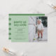 Este convite de festas primeiro aniversario divertido apresenta as palavras "festa no meu berço" em verde sobre um fundo verde claro. Ele oferece espaço para uma foto de solteiro à direita com espaço para todos os detalhes da sua festa à esquerda. A parte de trás tem um padrão listrado de coordenação de cores em tons de verde.