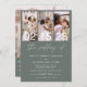 Sage Green O Casamento do Código QR Elegante Moderno, Quatro (4) Colagem de Fotos e Grande Convite Minimalista de Casamento de Data. Os cartões de convite para o casamento contêm uma tipografia moderna que é elegante, simples e moderna para usar depois de você celebrar o dia de casamento simples e minimalista.