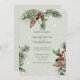 Capture a magia de uma terra maravilhosa de inverno com este belo convite para casamento, cuidadosamente feito para incorporar a elegância e charme do seu dia especial. Deixe o encanto dos galhos de pínus, cones de pínus, holly e neve caindo tecer a história do seu amor em uma tapeçaria mágica que deixará uma marca indelével nos corações de todos que o receberem.