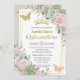 Convite Sage Green Pink Borboletas Florais Quinceañera