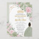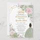 Este convite para a Quinceañera apresenta uma imagem geométrica de brilho prateado enfeitiçada pela delicada cor d'água verde, rosa pálido floral, verde-sábio macio e uma menina marrom em um lindo vestido verde-sábio. Personalize-o com seus detalhes de forma fácil e rápida, basta pressionar o botão personalizar para reorganizar e formatar o estilo e a colocação do texto. Também excelente para Sweet 16! c) O Feliz Cat Studio