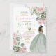 Convite Sage Green & Pink Princess Floral Dourada Quiñcean
