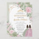 Convite Sage Green Pink Quinceañera Gêmeas Borboleta