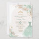 O convite perfeito para a quinceañera da sua filha está finalmente aqui! Este convite para o bebê azul-quinceañera, cômico e adorável, apresenta rosas verdes de sábio pastel macio, um vestido elegante de bola princesa, uma tiara dourada cintilante e elementos de vassoura tropical. Clique no botão "personalizar mais" se quiser reorganizar e formatar o estilo e a posição do texto.
