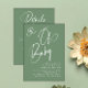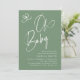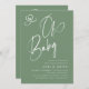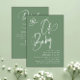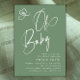 Designed as a clean two-sided baby shower invitation, this sage green layout pairs flowing script with modern typography. The front sets an elegant tone, while the back includes space for diaper raffle, books for baby, and registry details. A timeless choice for a calm, modern celebration.