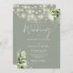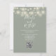 Este convite elegante para casamento verde sábio, com luzes bonito de cordas e verde floral, pode ser personalizado com suas informações em tipografia quic com os detalhes do seu website de casamento e seu código QR no verso. Projetado por Thisnotme©