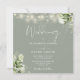 Este elegante convite para casamento verde sábio, com luzes bonito de cordas e verde floral, pode ser personalizado com suas informações em tipografia gráfica com sua foto especial no verso. Projetado por Thisnotme©