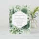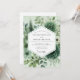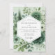 This design features a lush arrangement of sage green succulents and delicate blooms, creating an organic and refined aesthetic. The muted green palette evokes a sense of natural elegance. The artwork showcases various succulent types and smaller, white-petaled flowers interspersed with greenery.