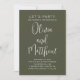 Convite de casamento e detalhes do script de tipografia com o Código QR no lado traseiro em tons de verde-sábio escuro. Ideal para floresta florestal ou casamento de jardim. Entre em contato comigo se precisar de itens adicionais.