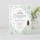 Convite Sage Green Watercolor Rosa Silver Quinceanera