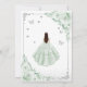 Sábio verde, prata e convite para comemoração da Quinceanera branca. Possui uma morena em vestidos de vestimenta de bola, fonte de script, borboletas prateadas, rosas verdes e tiara. Perfeito para uma elegante celebração de glam estilo princesa. Personalize com seus próprios detalhes. Impressos convites Zazzle ou modelo de impressão digital instantânea para download.