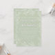 Convide seus convidados em estilo com este elegante convite de casamento verde sábio, projetado para minimalistas modernos e casamentos românticos de jardim. O fundo verde suave é enquadrado por uma delicada arte botânica branca, criando um aspecto fresco e eterno. Os nomes do casal são lindamente realçados em uma fonte de script graciosa, enquanto a letra sans-serif limpa mantém os detalhes nítidos e fáceis de ler. Perfeito para celebrações ao ar livre, verdes, rústicas ou elegantes, este convite pode ser personalizado com sua própria redação, fontes e cores para corresponder à sua visão de casamento.