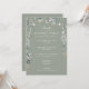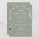 Um elegante convite de festas floral de flores silvestres que enquadra o seu detalhe de celebração de casamento em tipografia branca elegante num fundo verde-na moda. Projetado por Thisnotme©