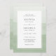 Sage Modern Wedding Tudo Em Um Convite. Este belo e elegante casamento verde sábio, tudo em um convite, apresenta um fundo ombre pintado a cores aquáticas com uma borda branca. A parte traseira do convite inclui o mesmo plano de mola de sábio com texto para adicionar os detalhes do seu casamento. Localize itens correspondentes na Coleção de Casamentos de Ângulo de Cor de Água do Sage.