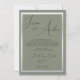 Belo sábio sofisticado e convite de casamento de cor prateada. Trendy Sage e cor prateada para seu dia especial. Cores românticas e da moda para casamentos. Bonito sábio com uma borda prateada brilhante. Convite único, chic e clássico adequado para qualquer estação. Todo texto, fonte e cor da fonte são totalmente personalizáveis para atender às suas necessidades. Se você quiser ajudar a personalizar, ou quiser fazer a correspondência de produtos, entre em contato comigo através da minha loja e eu ficarei muito feliz em ajudá-lo.
