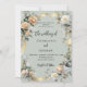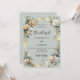 Um fundo verde sábio. Decorados com os florais brancos e amarelos e uma fita de ouro. Personalize e adicione seus nomes e detalhes.