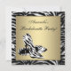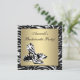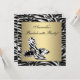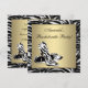 Convite de despedida de solteira com fundo zebra preto, branco e dourado e sapatos de salto zebra.