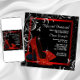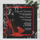 Convite de aniversário de número qualquer para mulher, sapatos de salto alto com glitter vermelho e preto elegante. Este lindo convite de festa de aniversário vermelho e preto é facilmente personalizado para o seu evento, basta adicionar os detalhes do evento, estilo de letra, tamanho e cor da letra e texto.