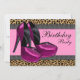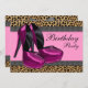 Sapatos de salto alto rosa vibrante e convite de festa de aniversário rosa com estampa de leopardo. Este convite de festa de leopardo rosa vibrante funciona bem para uma despedida de solteira, chá de noiva, aniversário de mulher de 21, 25, 30, 35, 40, 45, 50, 55, 60, 65 anos e qualquer outro número de aniversário. Este convite de aniversário rosa vibrante com estampa de leopardo estiloso funcionaria bem como convite de festa de aniversário de Sweet Sixteen ou convite de Quinceanera e é facilmente personalizado para o seu evento simplesmente escolhendo o botão "Personalize!" para começar a adicionar os detalhes do seu evento, estilo de fonte, tamanho e cor da fonte e texto. Por favor, note que todos os enfeites de bolo, cartões e desenhos de convite que você