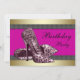 Sapatos de salto alto rosa quente e convite de festa de aniversário rosa com estampa de leopardo. Este convite de festa com estampa de leopardo rosa funciona bem para uma despedida de solteira, chá de noiva, aniversário de 21, 25, 30, 35, 40, 45, 50, 55, 60, 65 anos de uma mulher, e qualquer outro número de aniversário. Este convite de festa de aniversário rosa com estampa de leopardo seria adequado como convite para uma festa de aniversário de sweet sixteen ou convite de Quinceanera e é facilmente personalizado para o seu evento simplesmente escolhendo o botão "Personalize!" para começar a adicionar os detalhes do seu evento, estilo de fonte, tamanho e cor da fonte, e texto. Por favor, note que - todos os enfeites de bolo, cartões e desenhos de convite que você